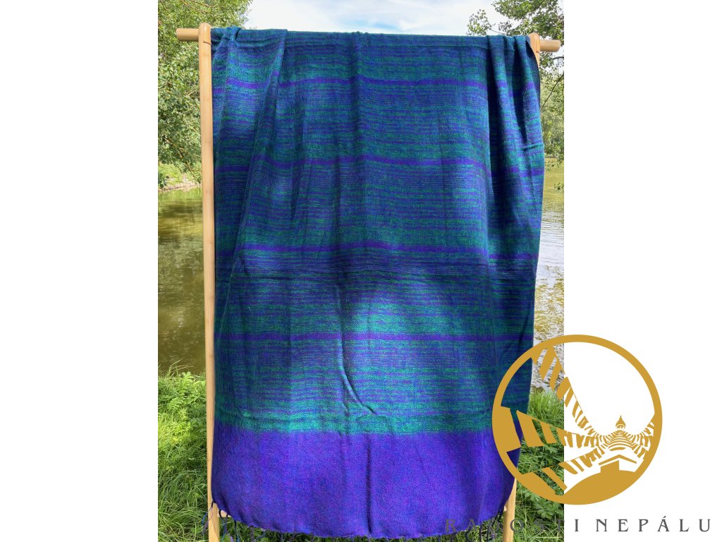 Velice příjemná deka je ručně utkána na tkalcovských strojích přímo v Nepálu. Deka má nádherné syté barvy a jedná se o originální kousek do domu nebo šatníku. Dá se nosit jako pléd nebo velká šála. Z vlastní zkušenosti je deka z jačí vlny ideální na procházky do přírody i s přespáním. Je velice hřejivá, skladná a velice lehká.