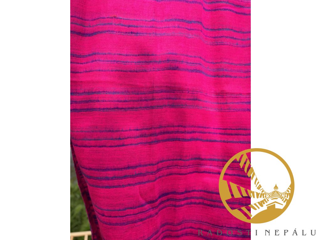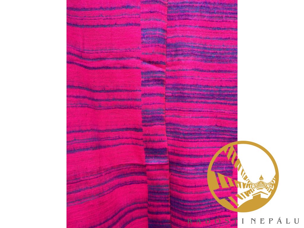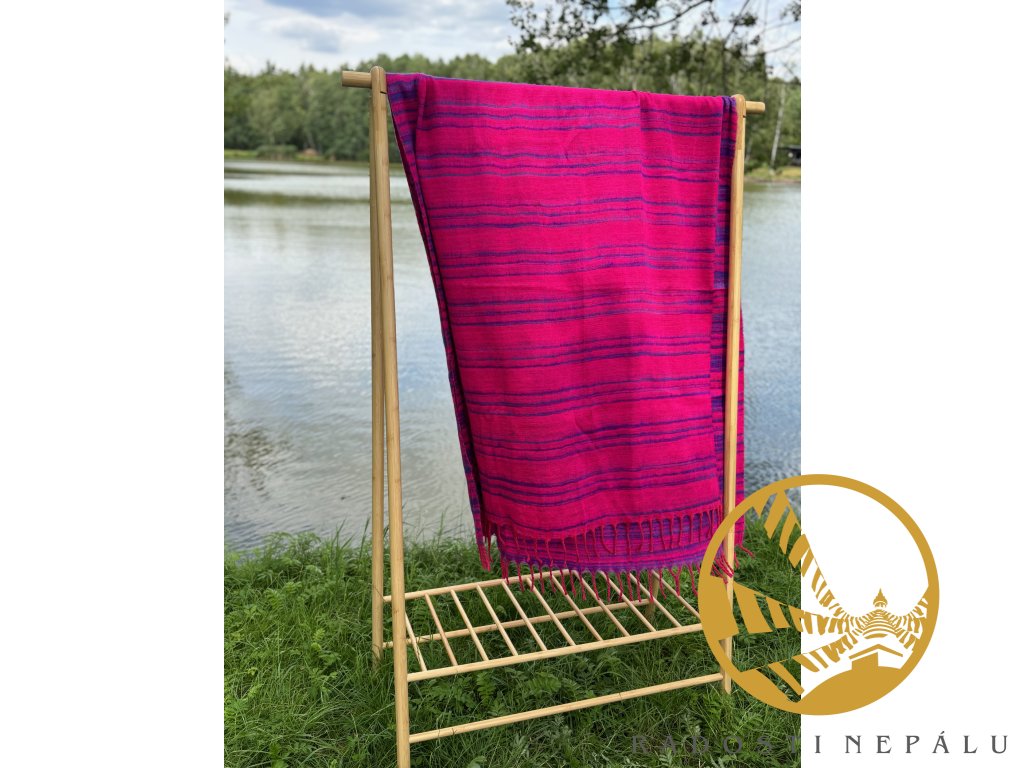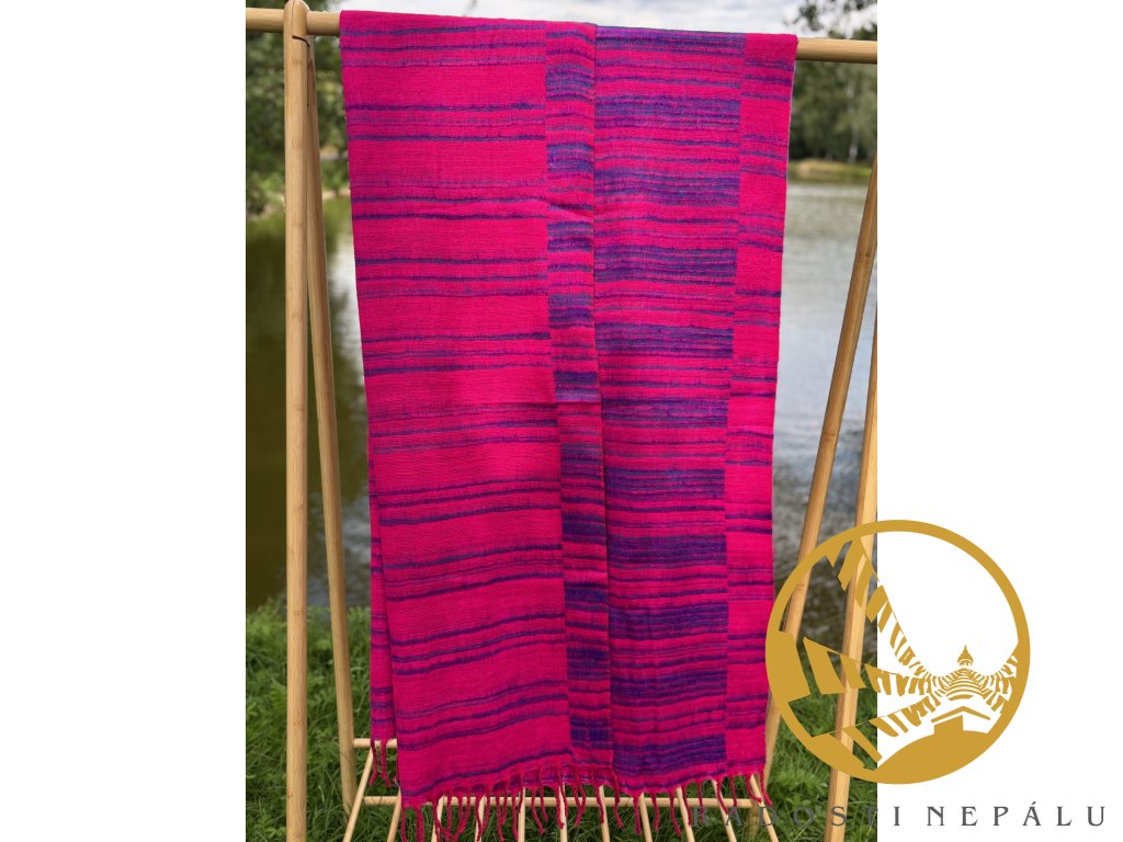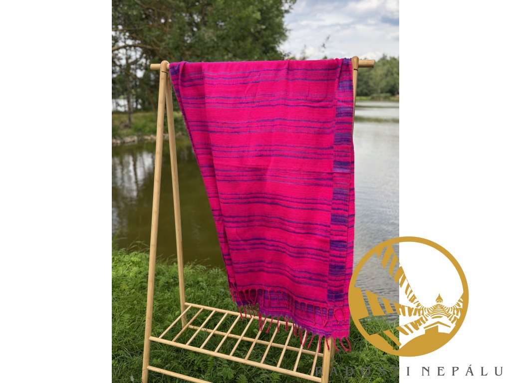 Velice příjemná deka je ručně utkána na tkalcovských strojích přímo v Nepálu. Deka má nádherné syté barvy a jedná se o originální kousek do domu nebo šatníku. Dá se nosit jako pléd nebo velká šála. Z vlastní zkušenosti je deka z jačí vlny ideální na procházky do přírody i s přespáním. Je velice hřejivá, skladná a velice lehká.