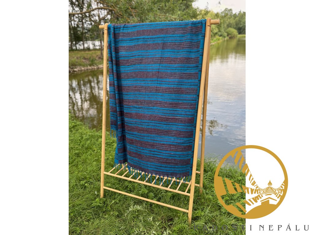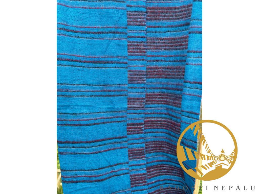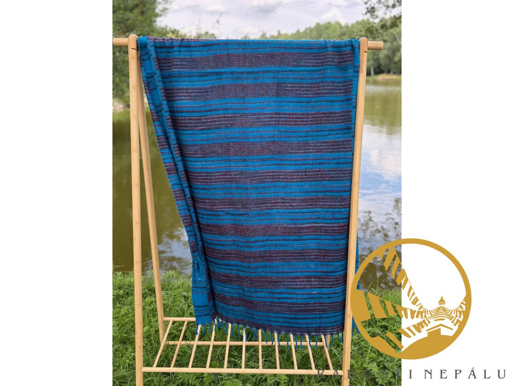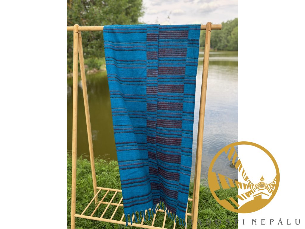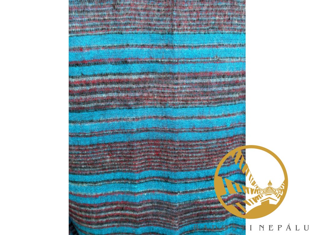 Velice příjemná deka je ručně utkána na tkalcovských strojích přímo v Nepálu. Deka má nádherné syté barvy a jedná se o originální kousek do domu nebo šatníku. Dá se nosit jako pléd nebo velká šála. Z vlastní zkušenosti je deka z jačí vlny ideální na procházky do přírody i s přespáním. Je velice hřejivá, skladná a velice lehká.