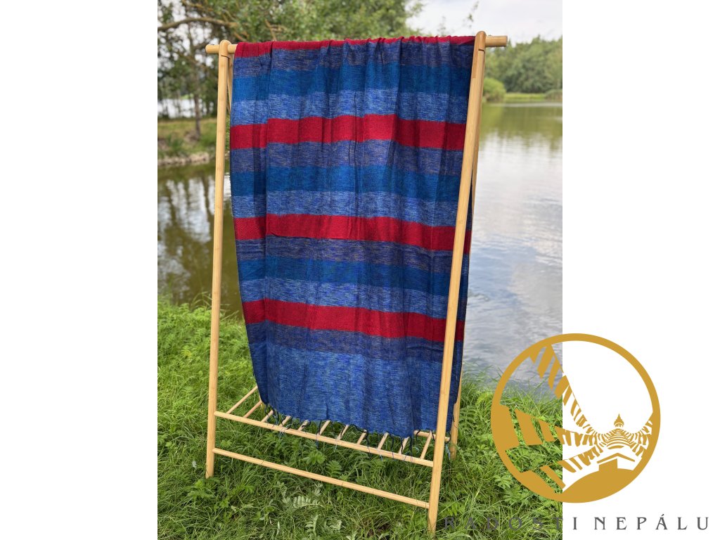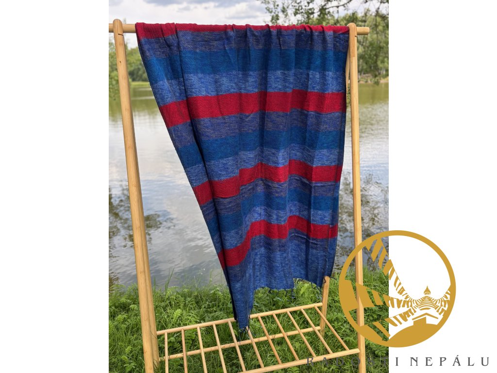 Velice příjemná deka je ručně utkána na tkalcovských strojích přímo v Nepálu. Deka má nádherné syté barvy a jedná se o originální kousek do domu nebo šatníku. Dá se nosit jako pléd nebo velká šála. Z vlastní zkušenosti je deka z jačí vlny ideální na procházky do přírody i s přespáním. Je velice hřejivá, skladná a velice lehká.