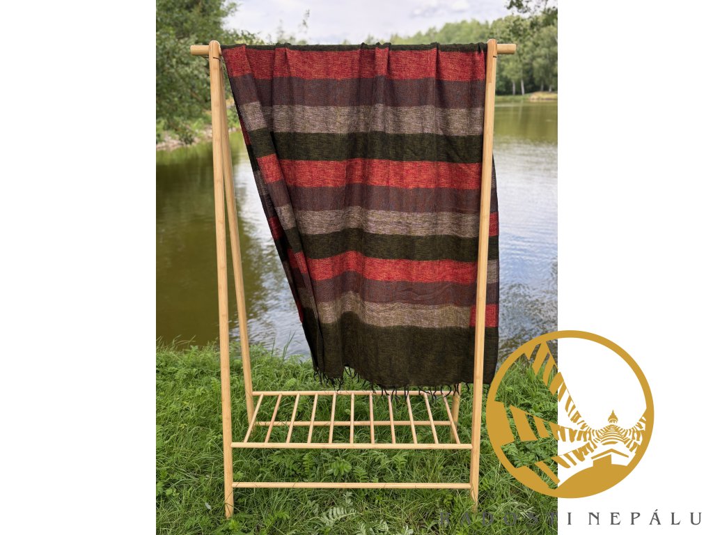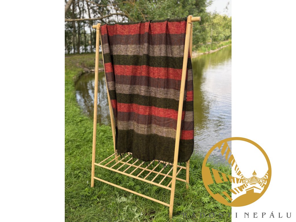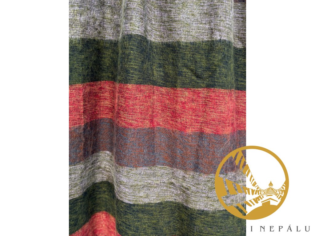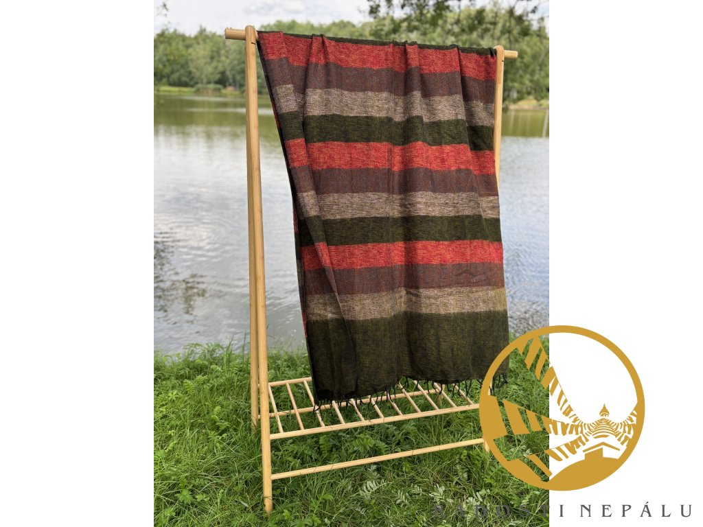 Velice příjemná deka je ručně utkána na tkalcovských strojích přímo v Nepálu. Deka má nádherné syté barvy a jedná se o originální kousek do domu nebo šatníku. Dá se nosit jako pléd nebo velká šála. Z vlastní zkušenosti je deka z jačí vlny ideální na procházky do přírody i s přespáním. Je velice hřejivá, skladná a velice lehká.