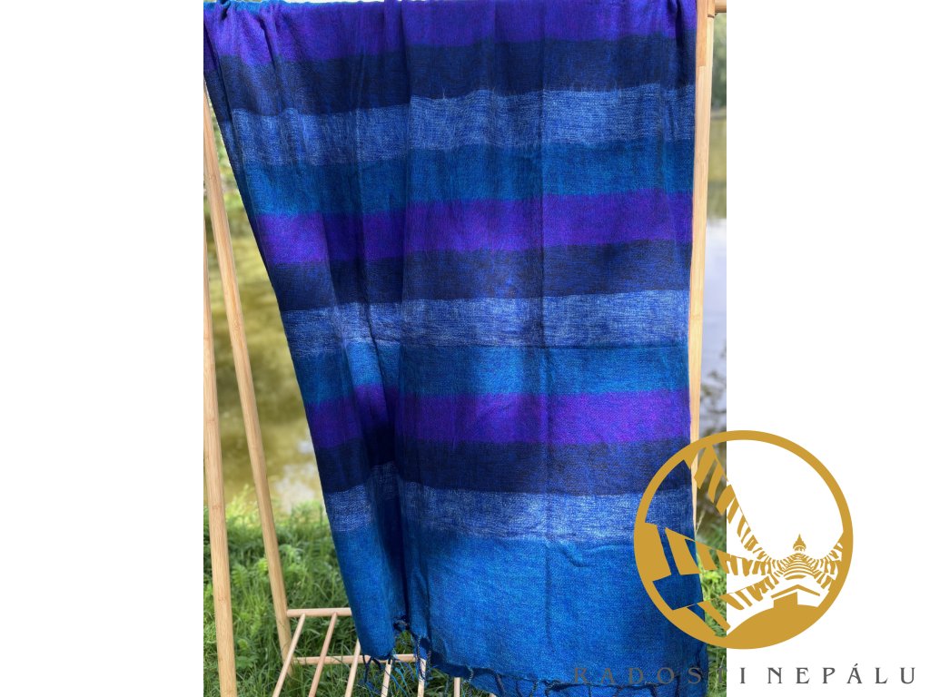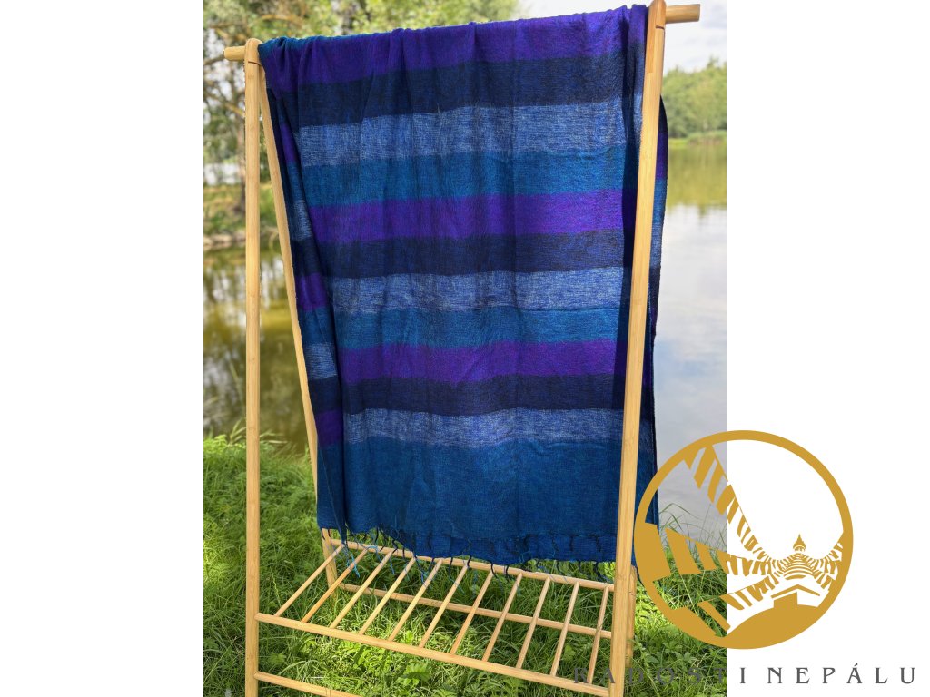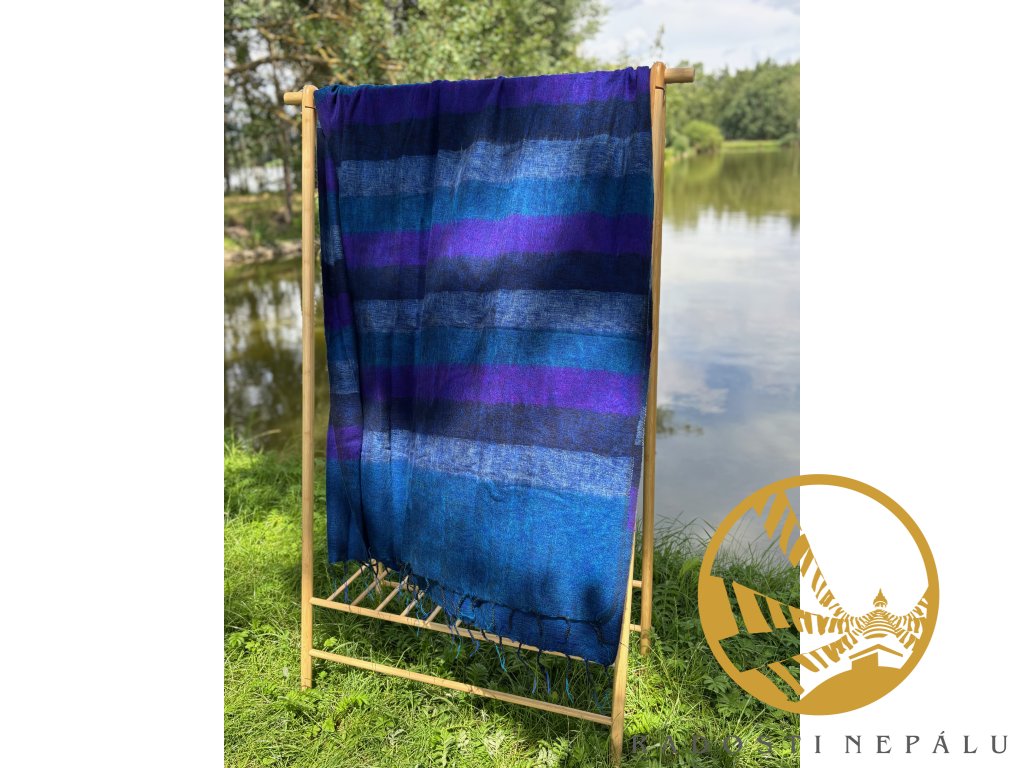 Velice příjemná deka je ručně utkána na tkalcovských strojích přímo v Nepálu. Deka má nádherné syté barvy a jedná se o originální kousek do domu nebo šatníku. Dá se nosit jako pléd nebo velká šála. Z vlastní zkušenosti je deka z jačí vlny ideální na procházky do přírody i s přespáním. Je velice hřejivá, skladná a velice lehká.