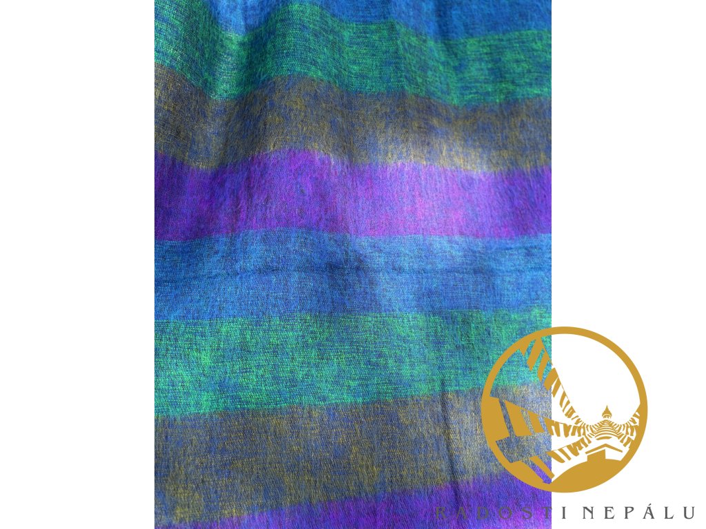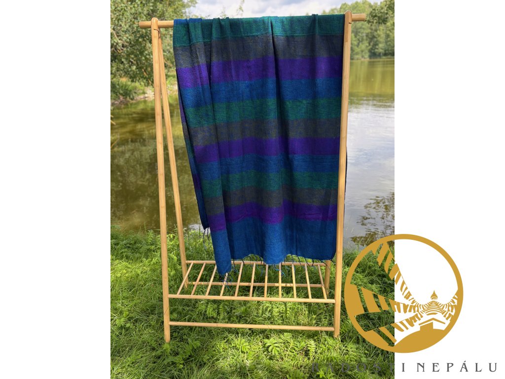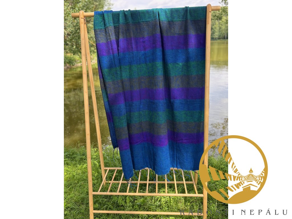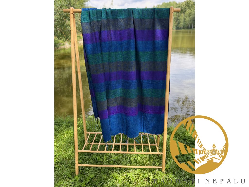 Velice příjemná deka je ručně utkána na tkalcovských strojích přímo v Nepálu. Deka má nádherné syté barvy a jedná se o originální kousek do domu nebo šatníku. Dá se nosit jako pléd nebo velká šála. Z vlastní zkušenosti je deka z jačí vlny ideální na procházky do přírody i s přespáním. Je velice hřejivá, skladná a velice lehká.