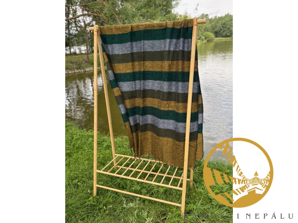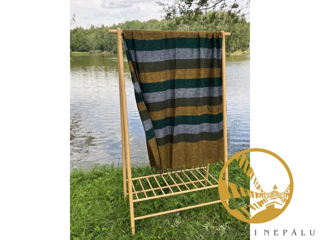 Deka je ručně utkána na tkacích strojích přímo v Nepálu. Má nádherné syté barvy, velice originální kousek do domu nebo do šatníku. Dá se nosit jako pléd nebo velká šála. Ale já ji také ráda tahám na čundry nebo na procházky do přírody, protože je neuvěřitelně hřejivá, skladná a lehoučká. A jelikož se jedná o přírodní materiál (jačí vlna a bavlna), nemusíte deku ani často prát. Veškeré nežádoucí pachy se vytratí, když deku necháte na pár hodin někde venku nebo doma rozloženou. Další úžasnou vlastností jačí vlny je, že nepropustí vodu. V případě lehkého mrholení nebo slabého deště, deka nepromokne. Voda po ní stéká.