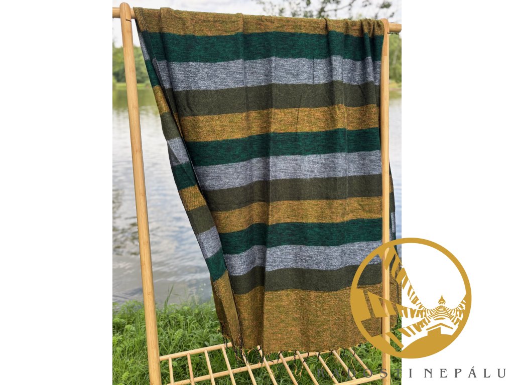 Velice příjemná deka je ručně utkána na tkalcovských strojích přímo v Nepálu. Deky má nádherné barvy i vzory a jedná se o originální kousek do domu nebo šatníku. Dá se nosit...