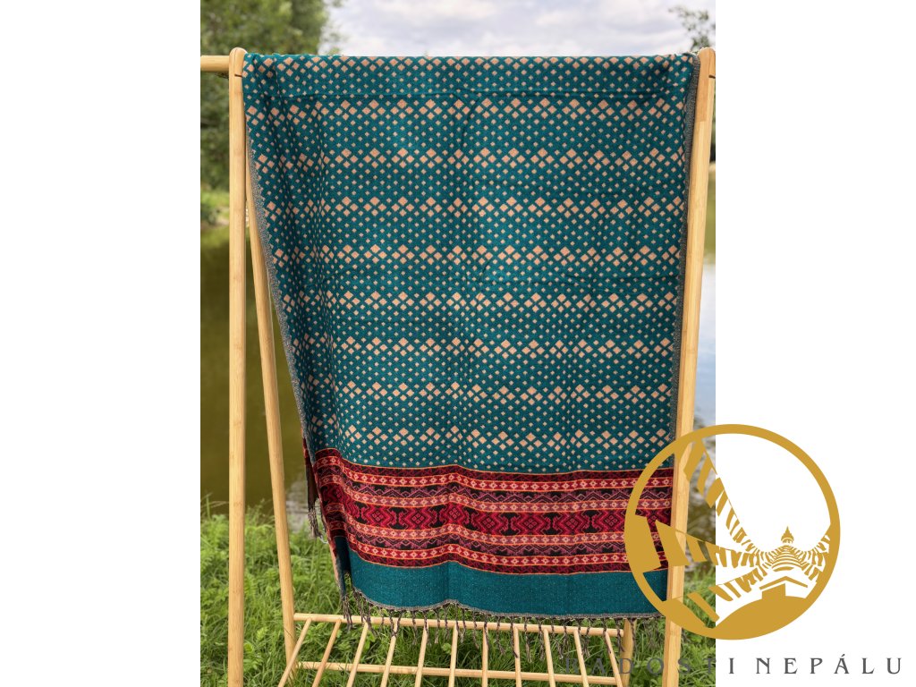 Velice příjemná deka je ručně utkána na tkalcovských strojích přímo v Nepálu. Deka má nádherné syté barvy a jedná se o originální kousek do domu nebo šatníku. Dá se nosit jako pléd nebo velká šála. Z vlastní zkušenosti doporučuji deku z jačí vlny vzít s sebou na procházky do přírody i s přespáním. Je velice hřejivá, skladná a lehká. Také odolá jemnému dešti a hřeje, i když je vlhká.