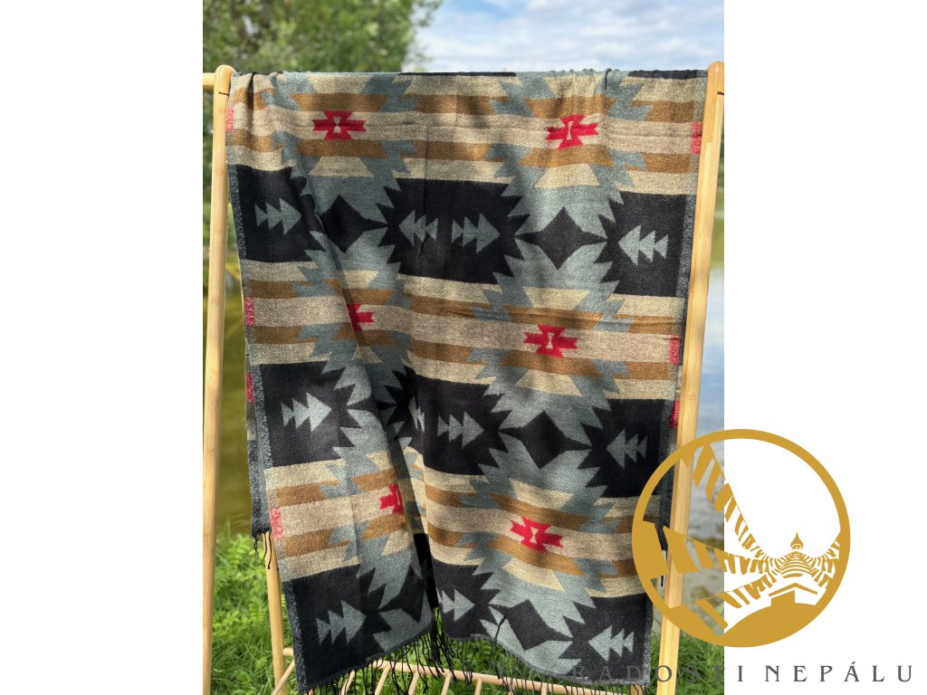 Velice příjemná deka je ručně utkána na tkalcovských strojích přímo v Nepálu. Deka má nádherné syté barvy a jedná se o originální kousek do domu nebo šatníku. Dá se nosit jako pléd nebo velká šála. Z vlastní zkušenosti doporučuji deku z jačí vlny vzít s sebou na procházky do přírody i s přespáním. Je velice hřejivá, skladná a lehká. Také odolá jemnému dešti a hřeje, i když je vlhká.
