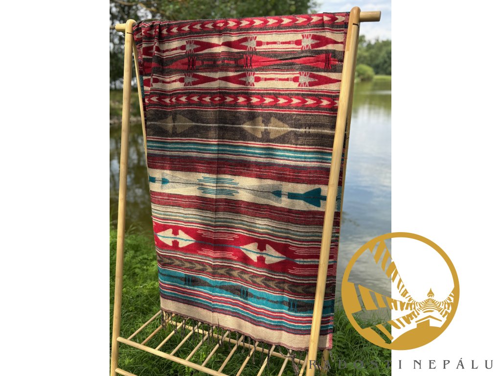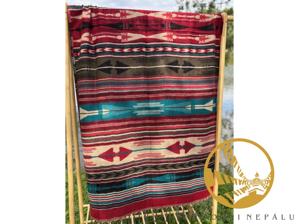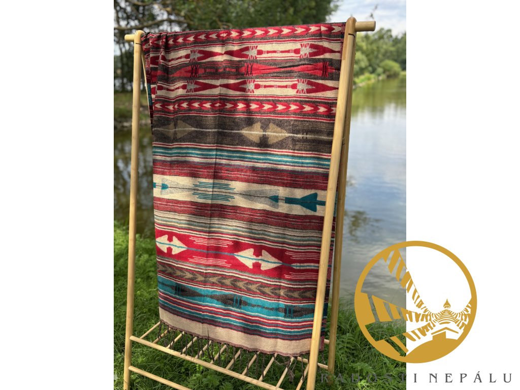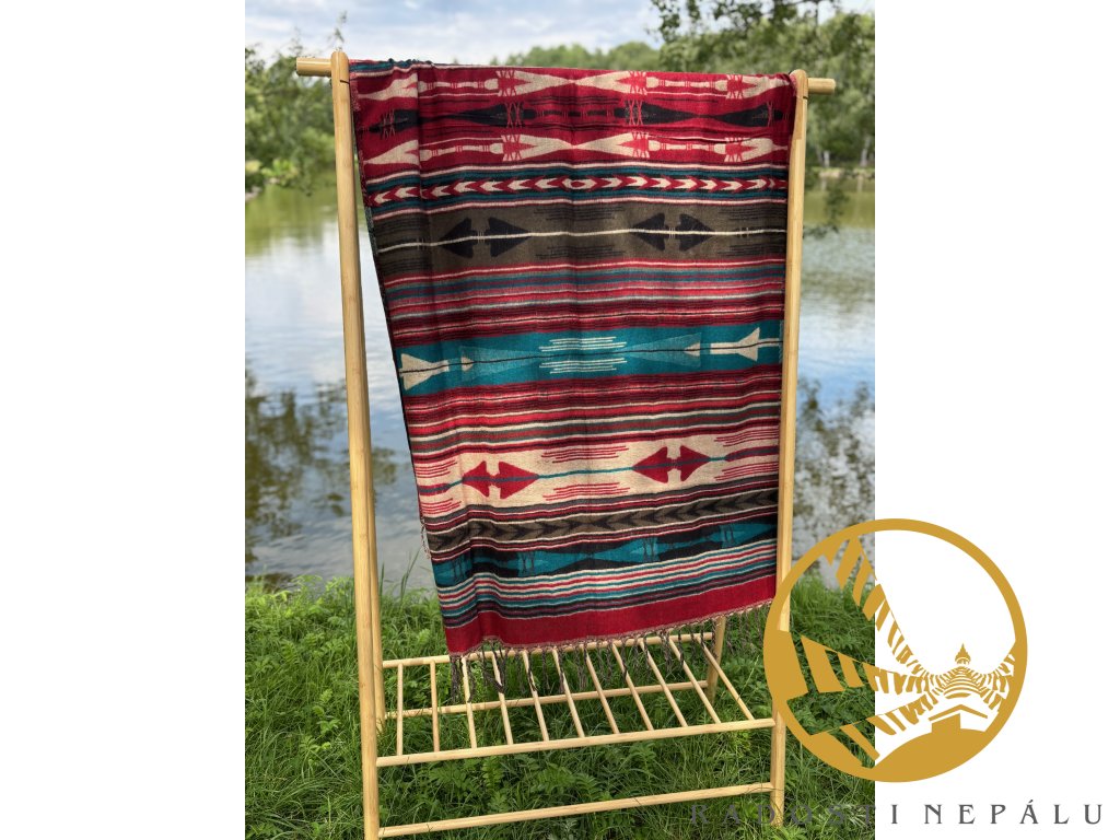 Velice příjemná deka je ručně utkána na tkalcovských strojích přímo v Nepálu. Deka má nádherné syté barvy a jedná se o originální kousek do domu nebo šatníku. Dá se nosit jako pléd nebo velká šála. Z vlastní zkušenosti doporučuji deku z jačí vlny vzít s sebou na procházky do přírody i s přespáním. Je velice hřejivá, skladná a lehká. Také odolá jemnému dešti a hřeje, i když je vlhká.