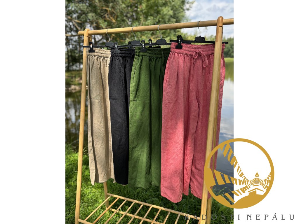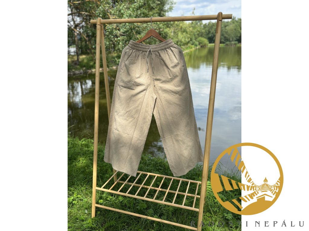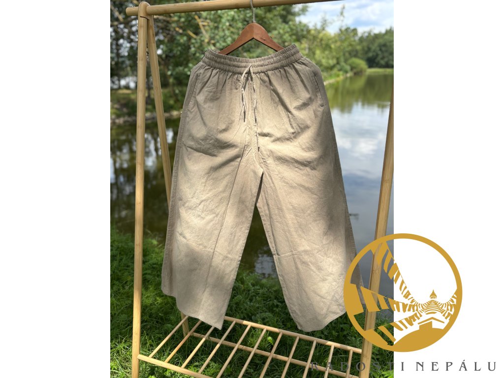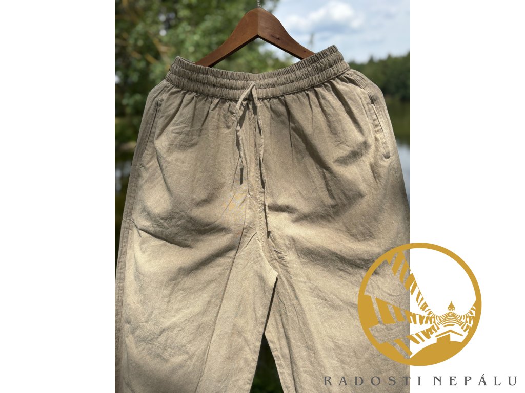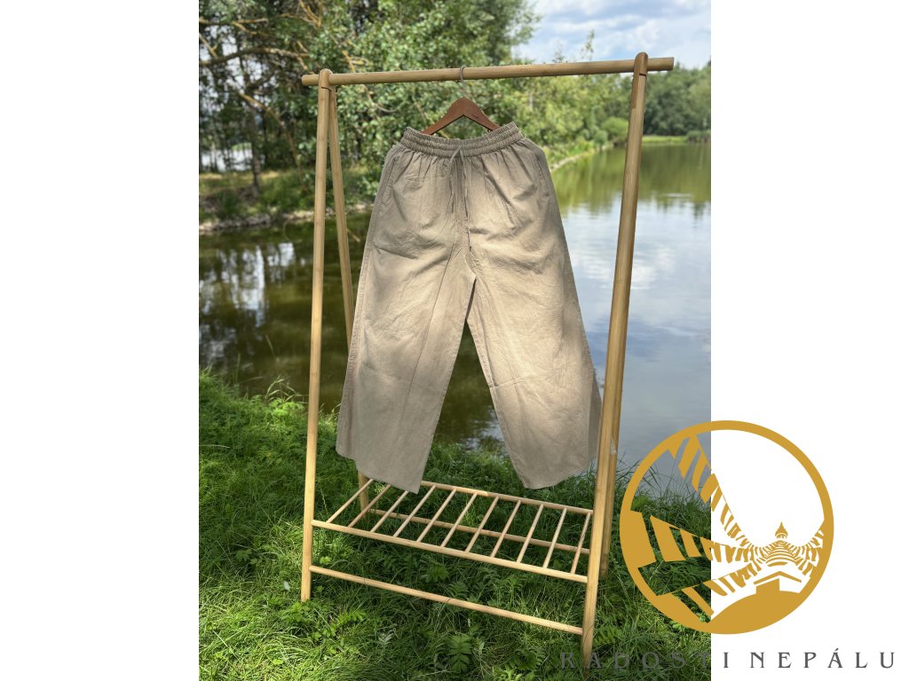 Kalhoty klasického střihu ručně ušité nepálskými krejčími a švadlenami Vám dodají pocit naprosté volnosti a možnosti jakéhokoli pohybu, kterého se Vám zamane.
