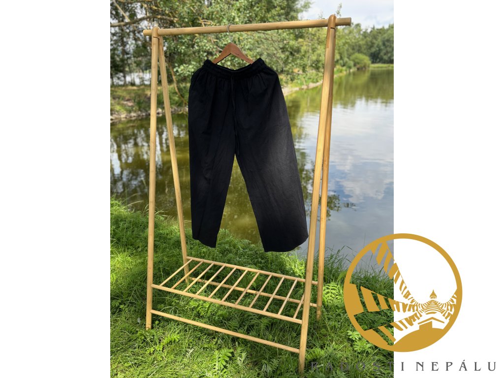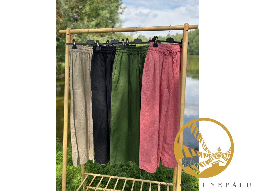 Kalhoty klasického střihu ručně ušité nepálskými krejčími a švadlenami Vám dodají pocit naprosté volnosti a možnosti jakéhokoli pohybu, kterého se Vám zamane.