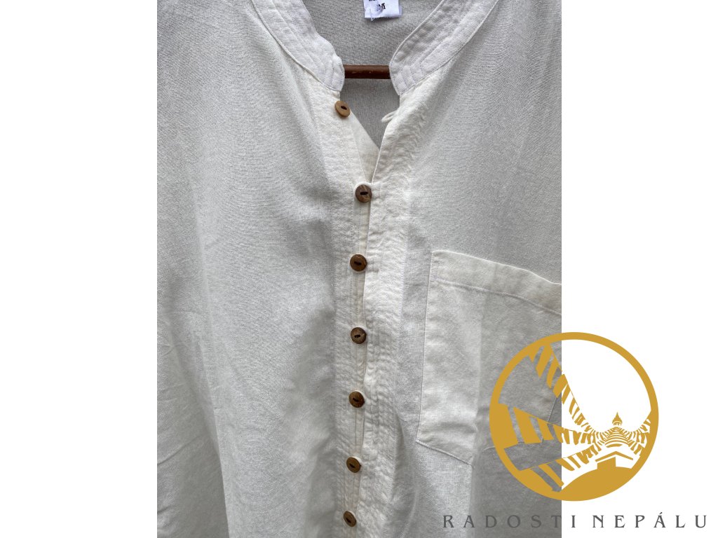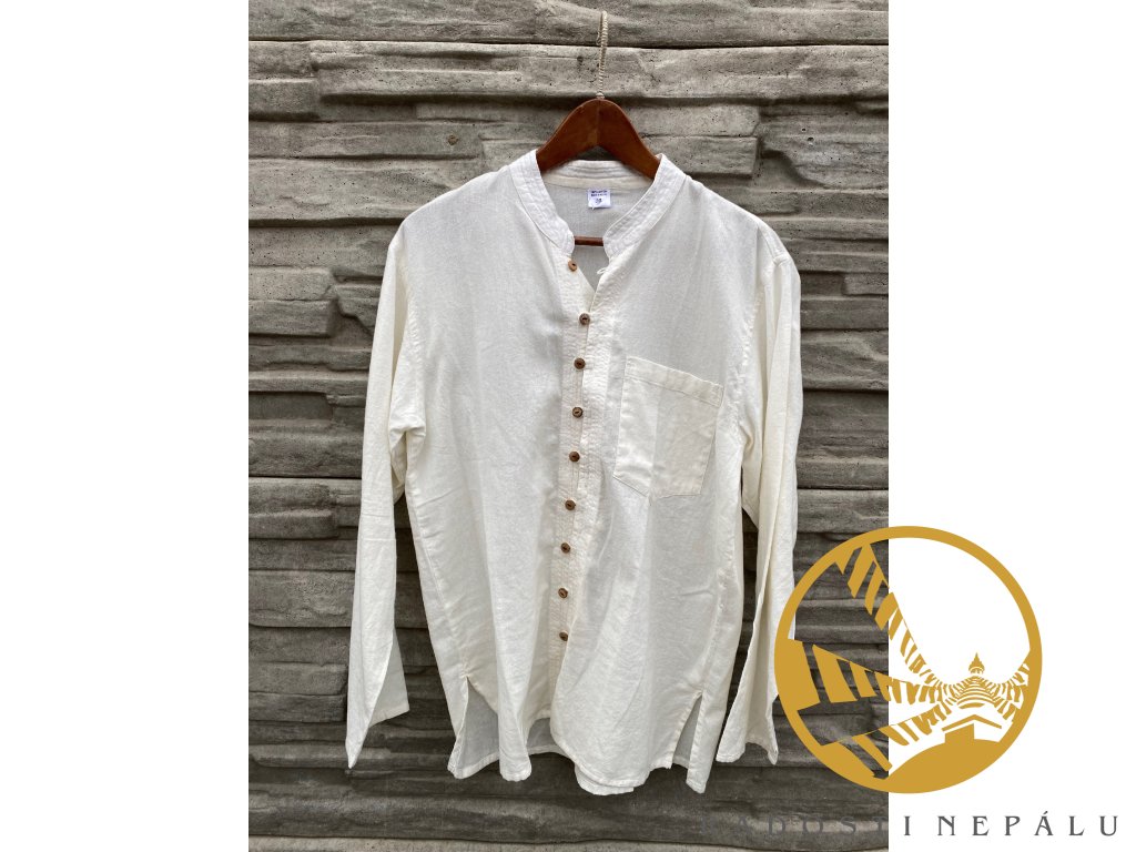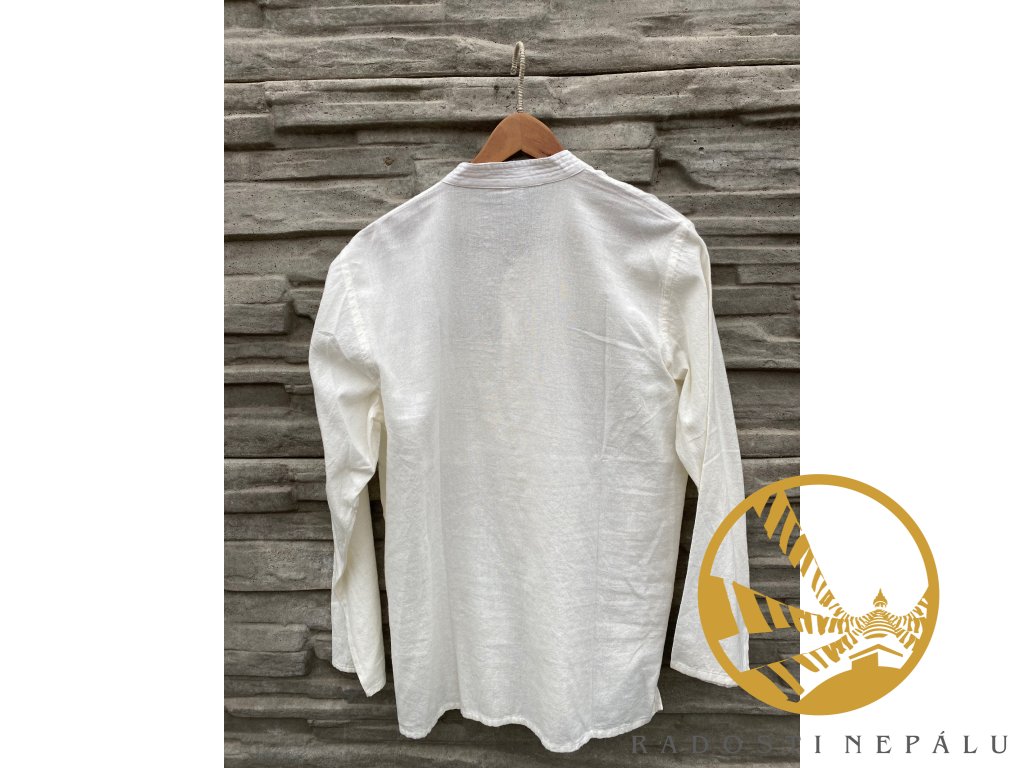 Košile se skvěle nosí v létě i v zimě. Ona totiž umí hřát i chladit zároveň. Při nošení na sobě košili skoro necítíte. Je ušita ručně v Nepálu ze 100% bavlny. Košile má zdobně vyšívané švy u krku. Košili můžete zapnout pomocí devíti dřevěných knoflíků . Má náprsní kapsu.