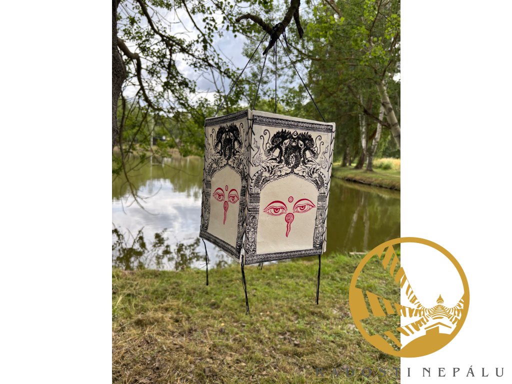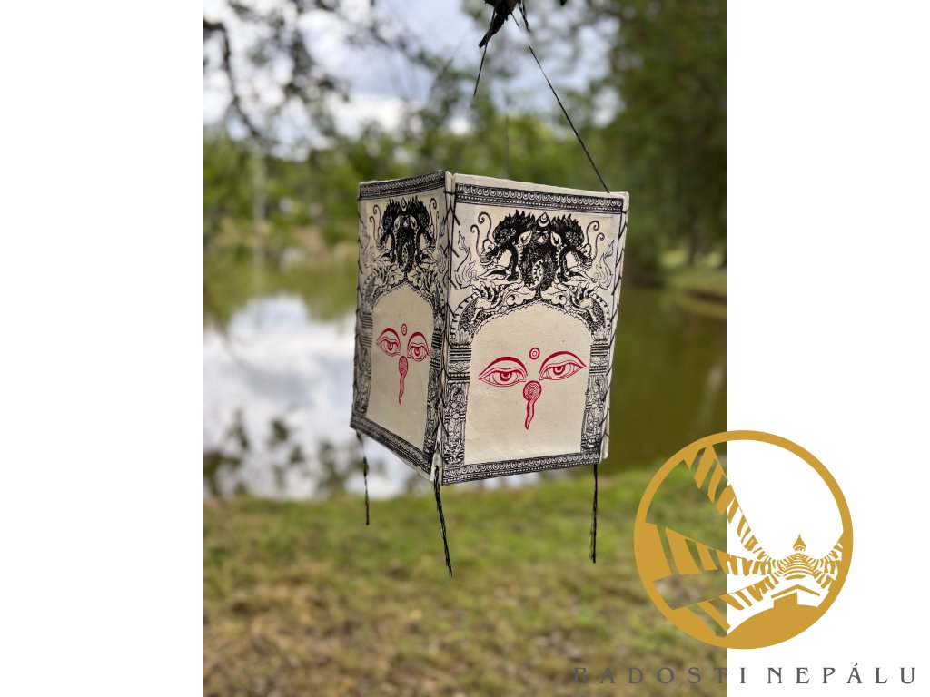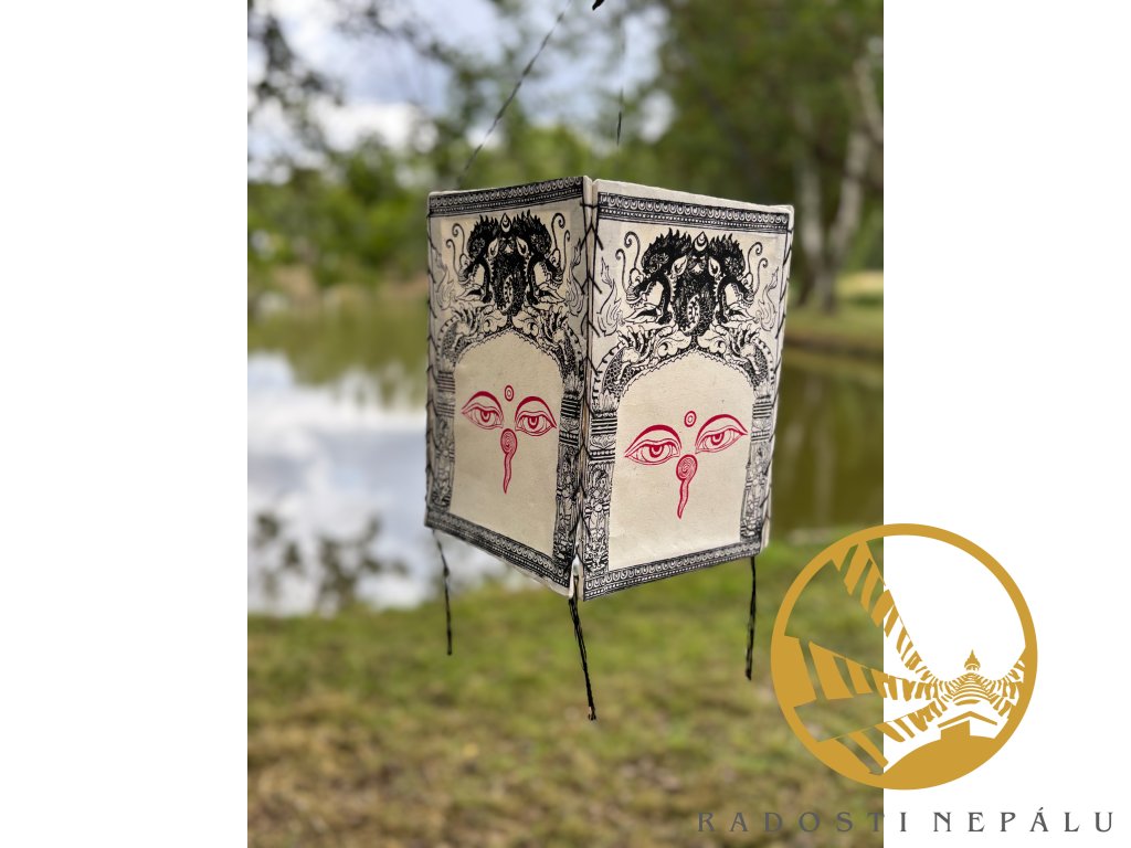 Lampion je vyroben z lokta papíru v dílne Narayana a ručně potištěn významnými symboly.