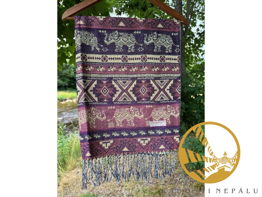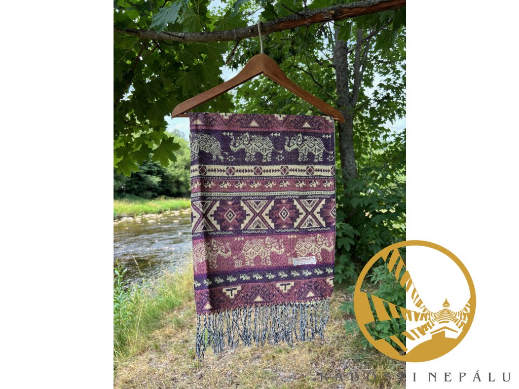 Deka je ručně utkána na tkacích strojích přímo v Nepálu. Má nádherné syté barvy, velice originální kousek do domu nebo do šatníku. Dá se nosit jako pléd nebo velká šála. Ale já...