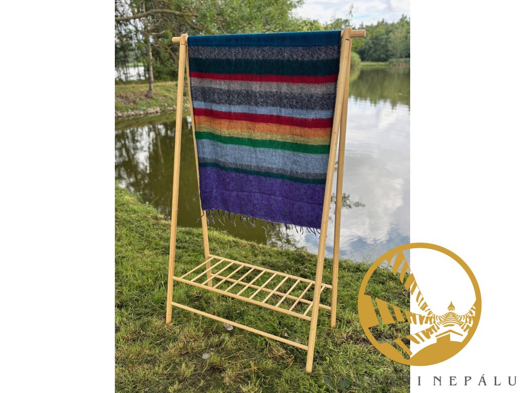 Deka je ručně utkána na tkacích strojích přímo v Nepálu. Má nádherné syté barvy, velice originální kousek do domu nebo do šatníku. Dá se nosit jako pléd nebo velká šála. Ale já...