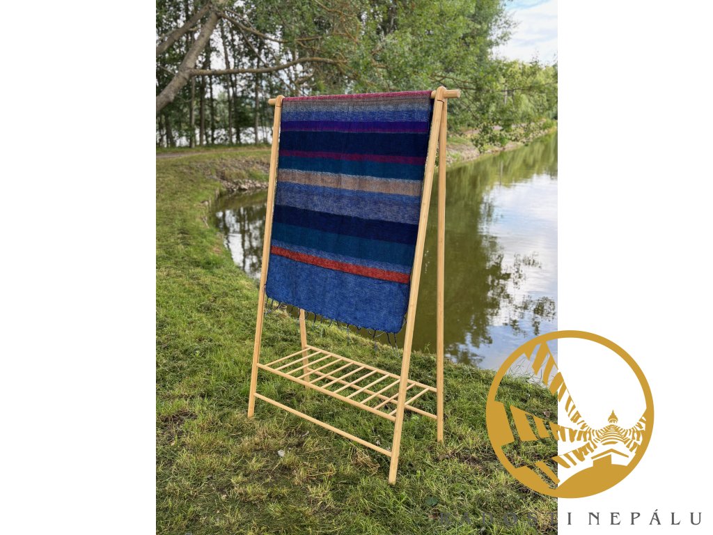 Deka je ručně utkána na tkacích strojích přímo v Nepálu. Má nádherné syté barvy, velice originální kousek do domu nebo do šatníku. Dá se nosit jako pléd nebo velká šála. Ale já...