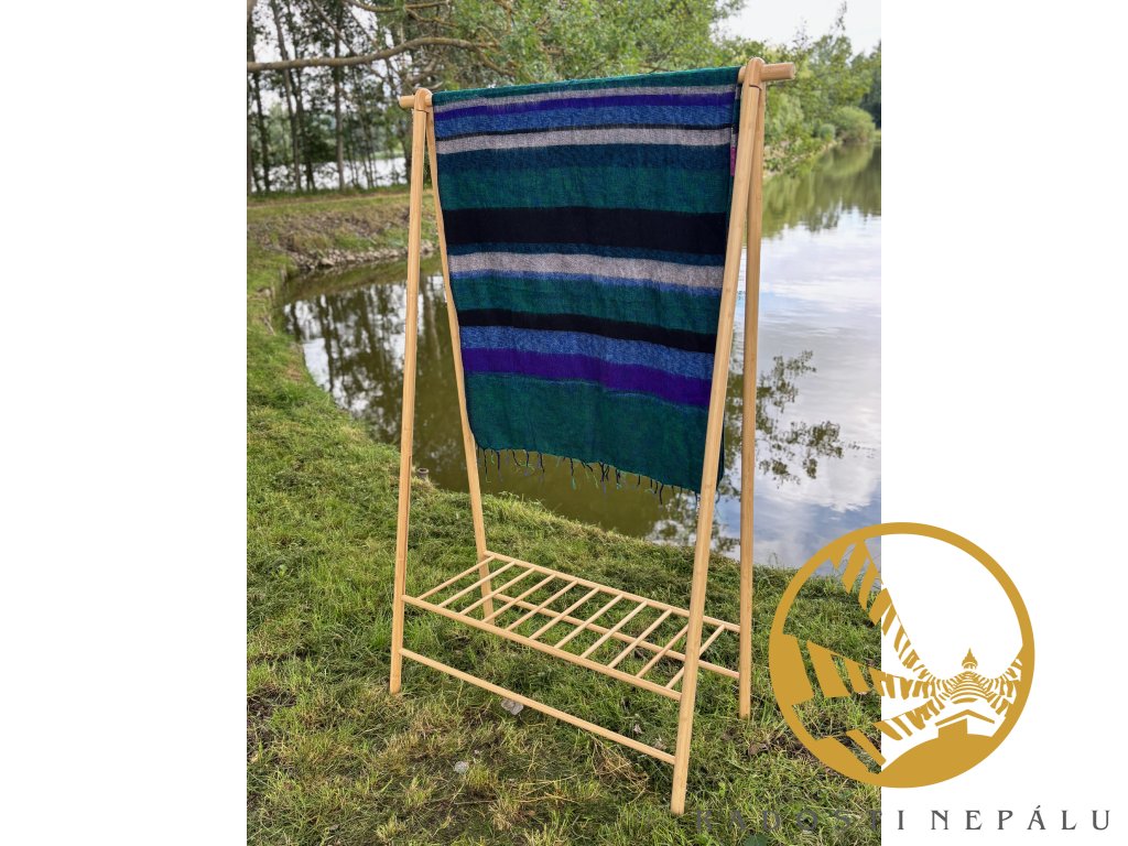Deka je ručně utkána na tkacích strojích přímo v Nepálu. Má nádherné syté barvy, velice originální kousek do domu nebo do šatníku. Dá se nosit jako pléd nebo velká šála. Ale já...