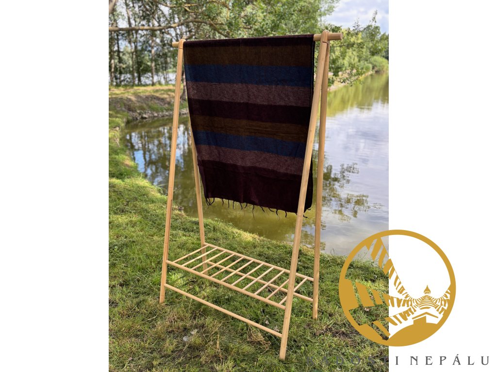 Deka je ručně utkána na tkacích strojích přímo v Nepálu. Má nádherné syté barvy, velice originální kousek do domu nebo do šatníku. Dá se nosit jako pléd nebo velká šála. Ale já...