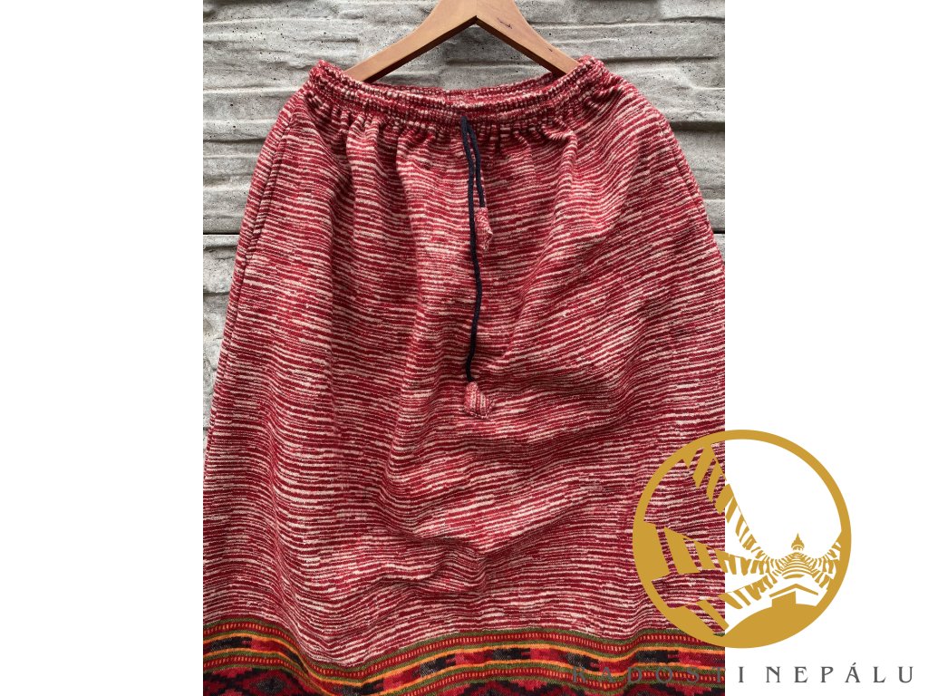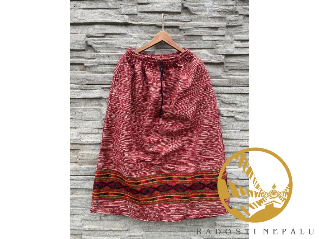 Sukně z vlny jaka domácího mají klasický střih do A a jsou vybaveny dvěma kapsami. V pase je sukně na pružnou gumu, kterou můžete ještě popřípadě stáhnout šňůrkou.